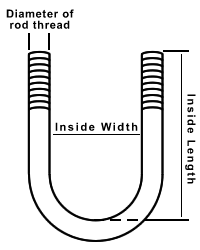 - Inside Width. This is the distance from one inside edge of the U-Bolt to the other. It is not center-to-center or outside-to-outside.