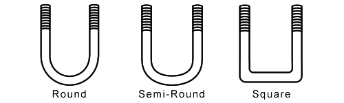 - You must choose the correct U-Bolt shape for your application – round, semi-round, or square. Square will not substitute for semi-round, nor will semi-round work in place of round, and so on.